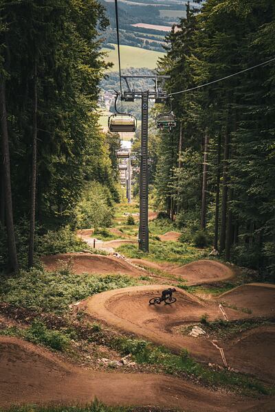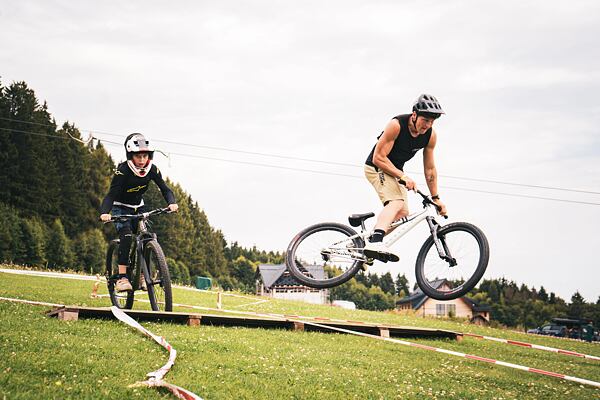 Sme stále sa rozvíjajúci trailpark s naozaj pestrou ponukou. Náš modrý flow trail je jeden z najdlhších v Česku, super pre deti od cca 6 rokov a pre začiatočníkov, no pojazdia si na ňom aj skúsení jazdci. Práve ten si obľúbila aj bike škola, ktorá má zázemie priamo v areáli a využíva ho pri výuke – vraj má všetko, čo na učenie treba. Na dojazde máme mini bike park s vlnkami a klopenkami, kde sa konajú aj spomínané preteky, pumptrack, skákaciu lajnu pre pokročilých a samozrejme červený Blinduro trail, ktorý tu ostal po legendárnych pretekoch. A keď niekto hľadá poriadnu výzvu, máme dve čierne trate – jedna ide pod lanovkou, druhá sa napája v lese, ktorý je plný kameňov a má svoj jedinečný vibe.