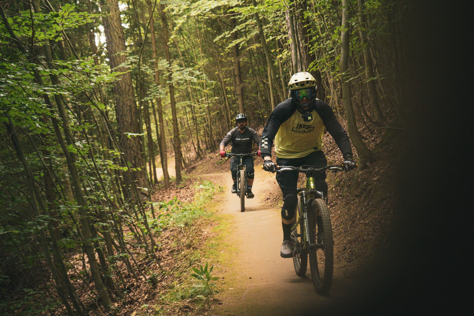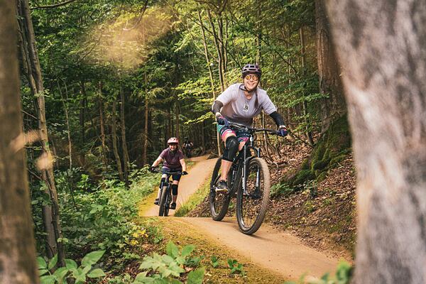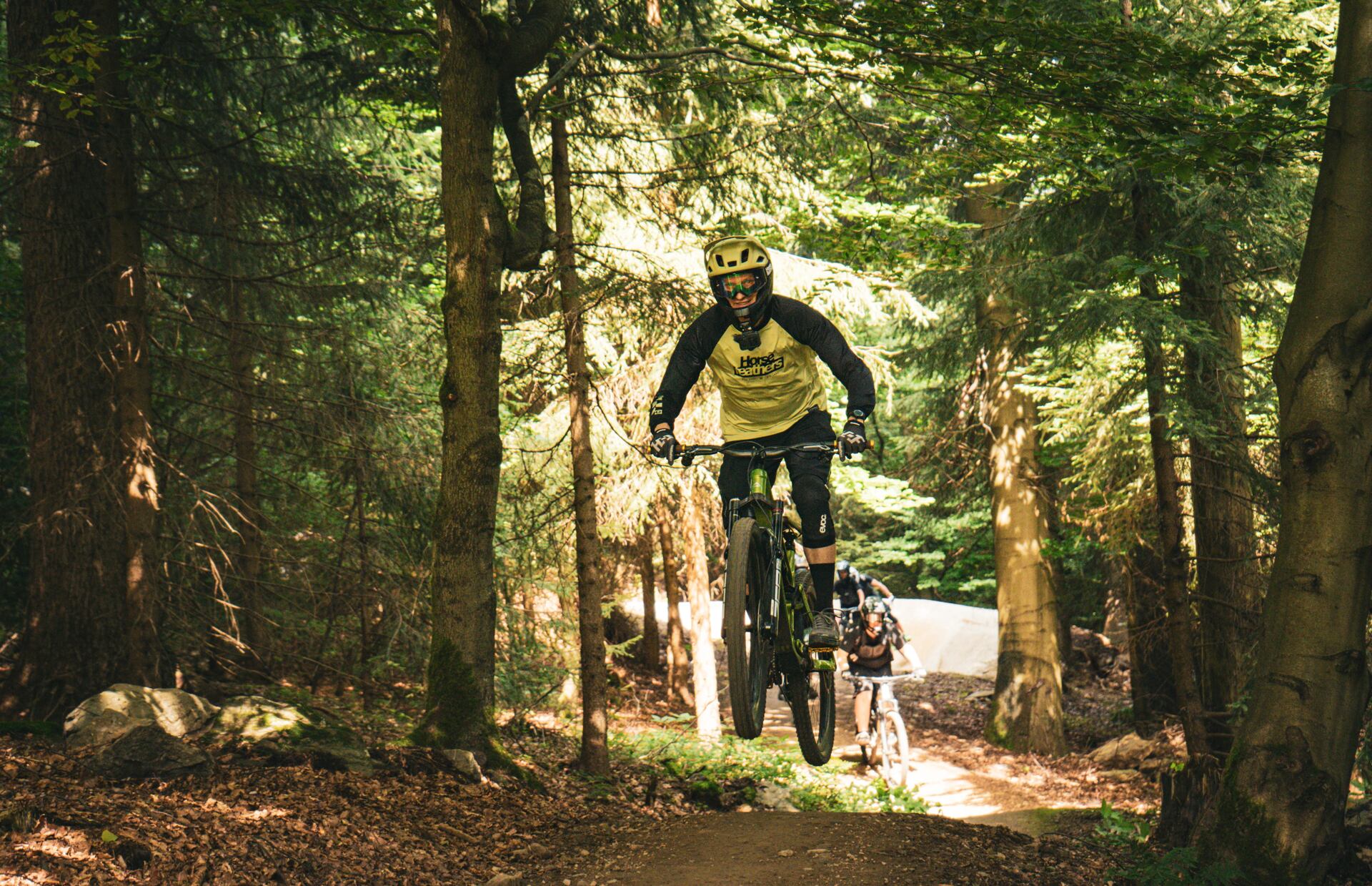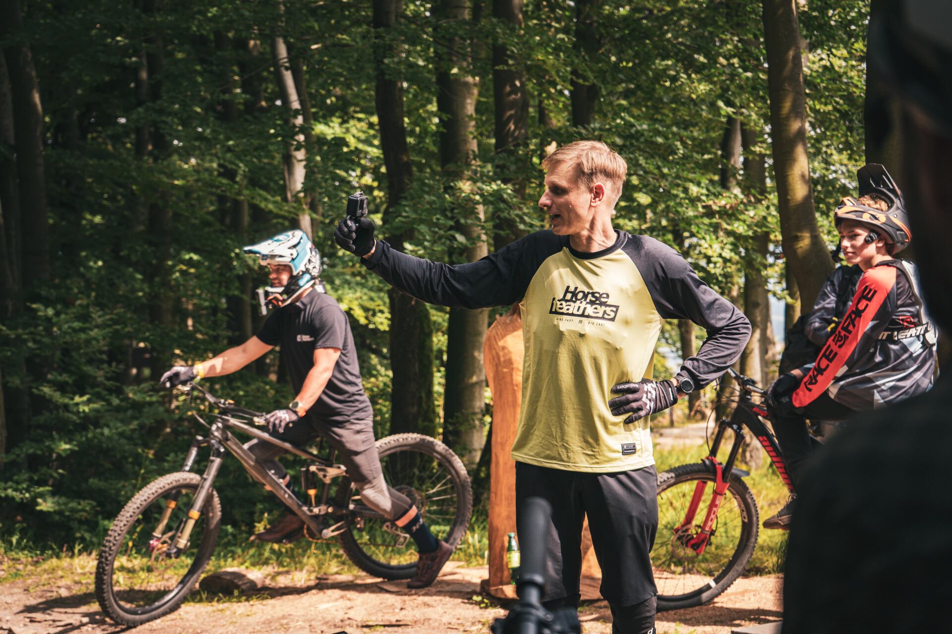 Evka Adamczyková a HF riders Tomáš Zejda a Jakub Hejl si užívajú jazdu v trail parku Bukovka